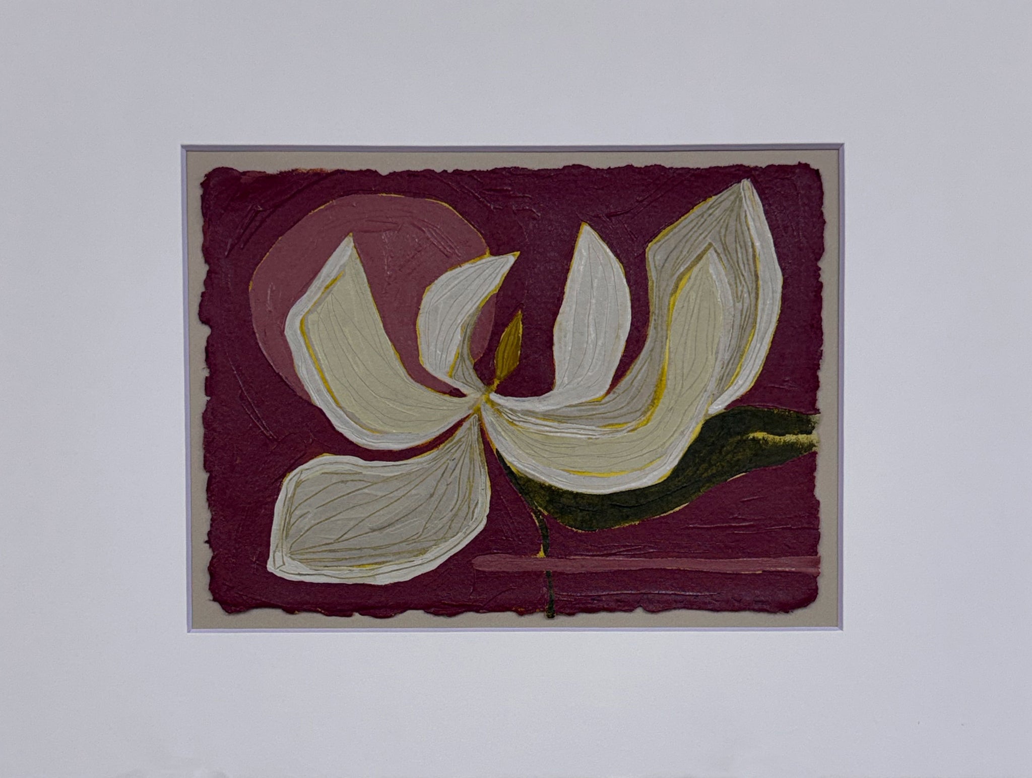 Acrylic paint on hand torn paper. Painting is approximately 5x7" and floated with a white matte making it ready for a 9x12" frame.