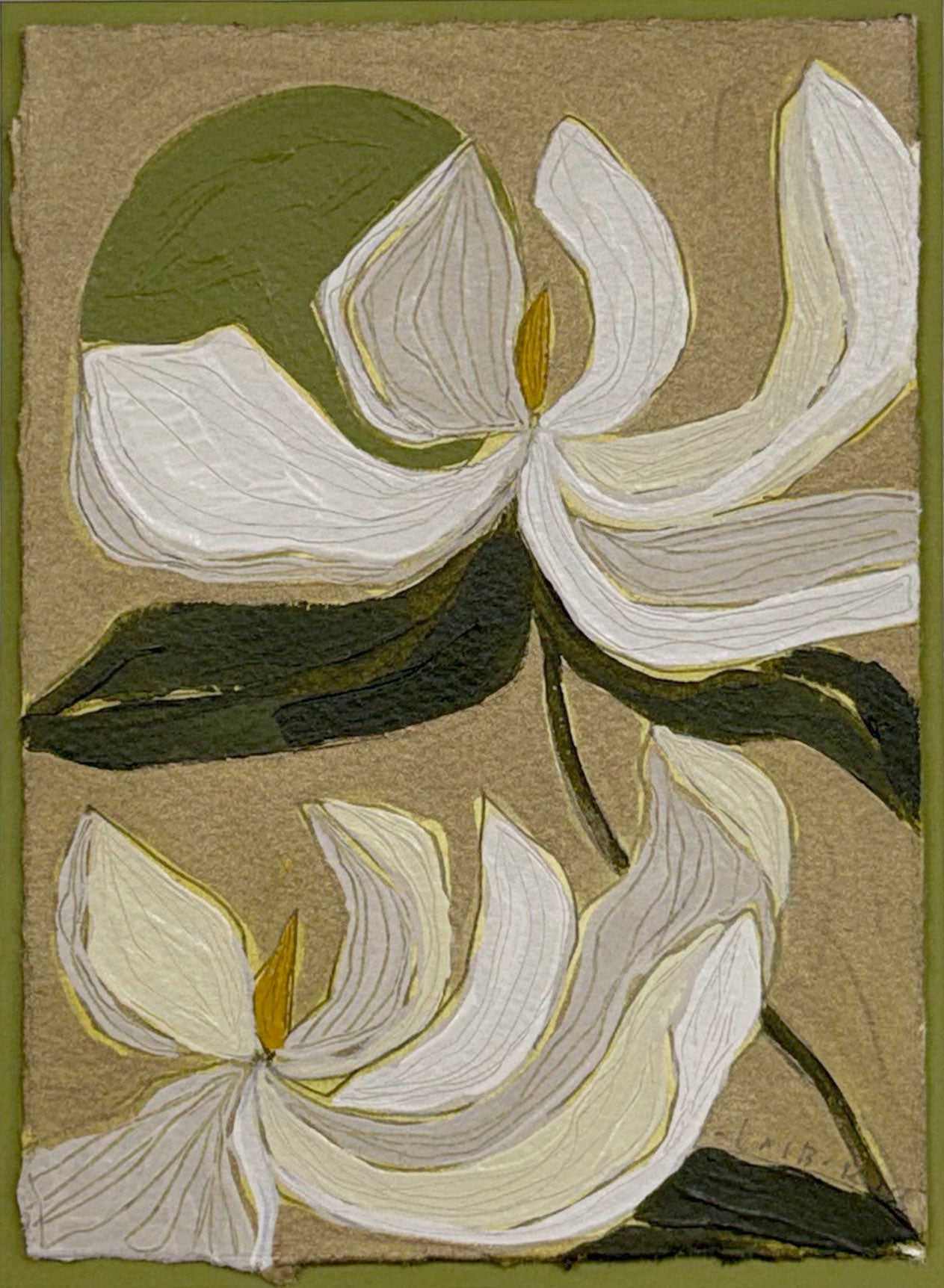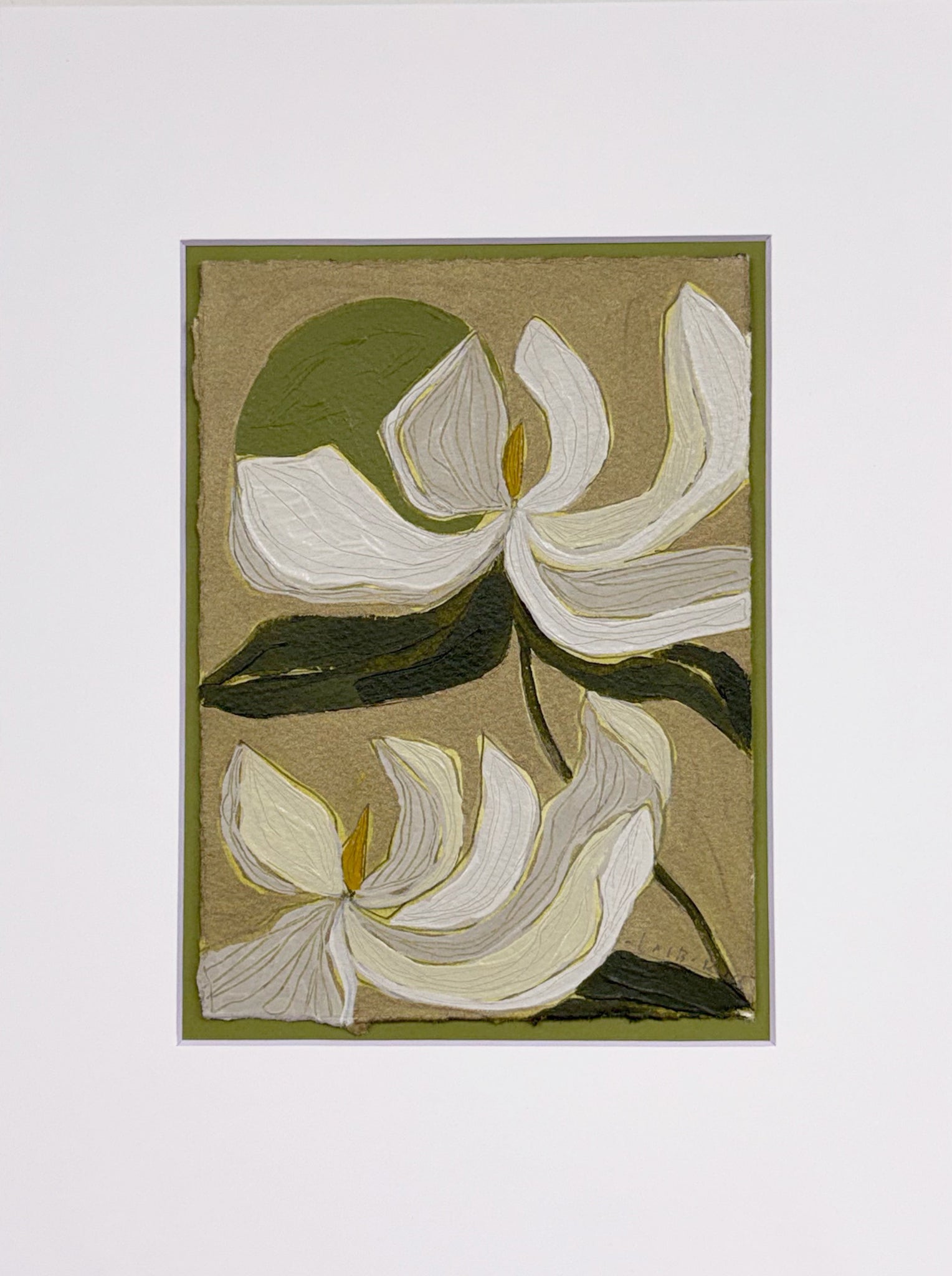 Acrylic paint on hand torn paper. Painting is approximately 5x7" and floated with a white matte making it ready for a 9x12" frame.